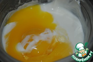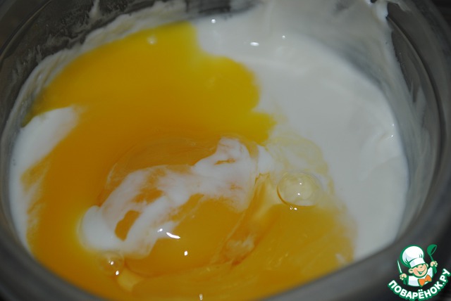 Смешиваем сметану, 2 желтка и мускатный орех.