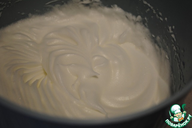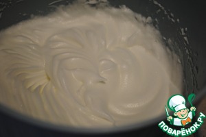 Взбиваем белки с щепоткой соли до устойчивых пиков.