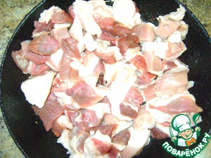 Свинину нарезать небольшими кусочками. Посыпать тмином и солью. Прожарить на раст. масле 5 мин.