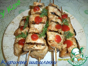 Затем одеваем на шампура-шпажки, и выкладываем на верхнюю решетку в АГ (разогретый) на 15 мин, при Т230, затем переворачиваем и еще при Т200 5-10 мин.