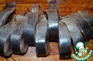 6. Каждый кусочек разрезать пополам и аккуратно вытащить крупные косточки. Для указанного количества нам понадобится 6 кусочков.