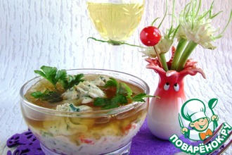 • Далее идёт копчёная курица. Заправить салат соусом карри. Можно подавать в качестве великолепного овощного гарнира. Приятного аппетита!