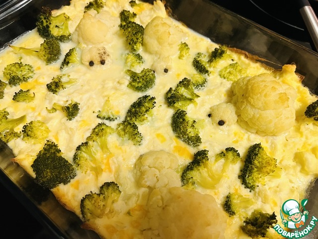 Я бы всё-таки варила цетную капусту и проколли по отдельности. Цветную - с добавлением молока и чуть дольше.