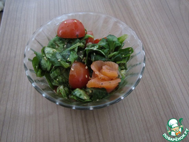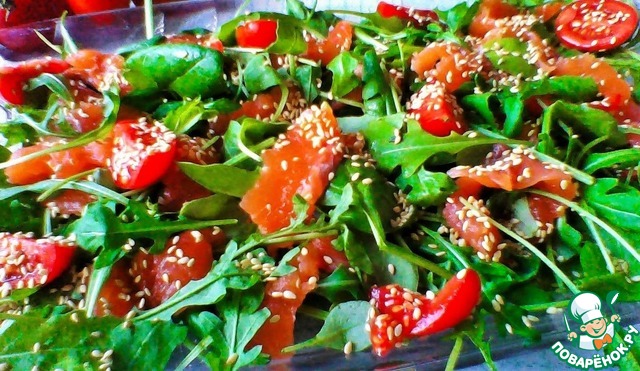 У меня рукколы было мало,я еще добавила полевой салат (она же валерианелла).