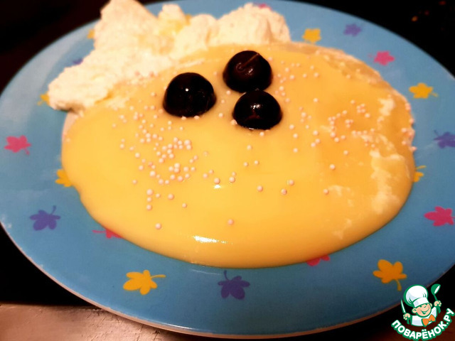 Нашу слегка остывшую жидкость взбиваем миксером на большой скорости и на холодной водяной бане - для придания воздушности; укладываем на дно формочек ягоды или кусочки фруктов и заливаем формочки. Ставим в холодильник на 2 -3 часа.