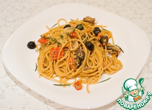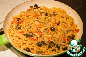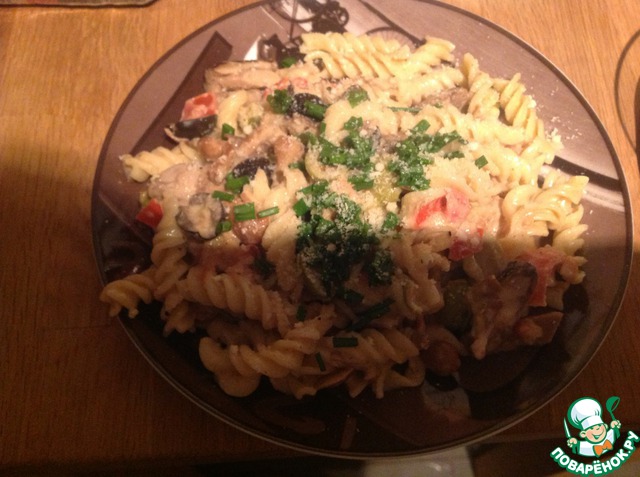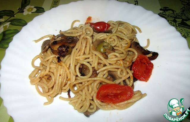 Ингредиенты для «Легкая паста с грибами и оливками»:
