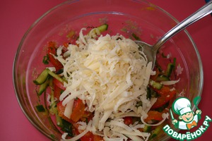 Затем добавляем сыр, тёртый на крупной тёрке.