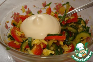 Добавляем ложечку домашнего майонеза, перемешиваем и салат готов!