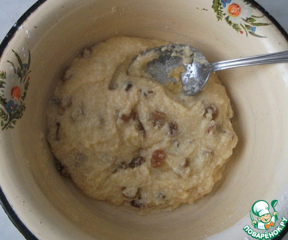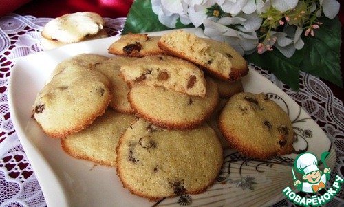 Также замешиваем тесто на печенье с изюмом. Изюм заранее нужно распарить.