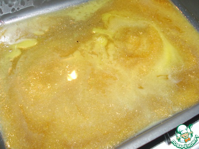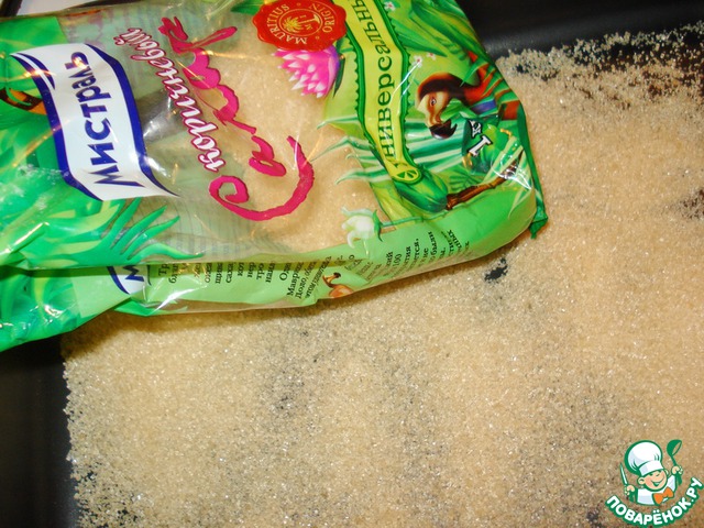 Нам понадобится форма размером 33х23 см. В нее мы высыплем коричневый сахар.