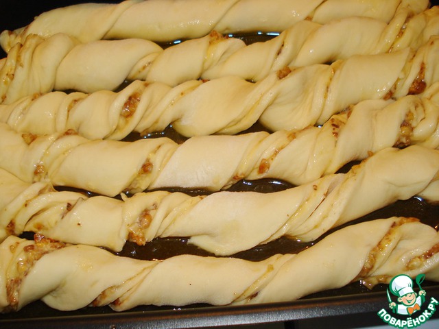 Рецепт «Косички с орехами в карамельно-медовом соусе»: