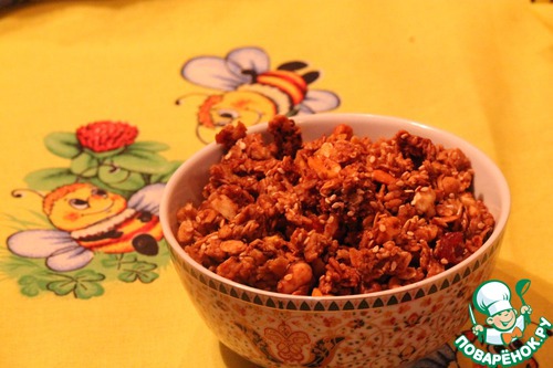 Кефирную смесь вылить в муку и все перемешать. Добавить в тесто гранолу (см. рецепт ниже), примерно 250 г.
