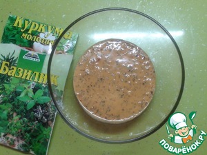 Для начала готовим маринад. Смешиваем томатную пасту, сметану, масло, чеснок (мелко нарубленный). Не жалейте базилик, его должно быть много. Туда же паприка, куркума и кориандр, сок половины лимона. Соль в маринад не нужна.