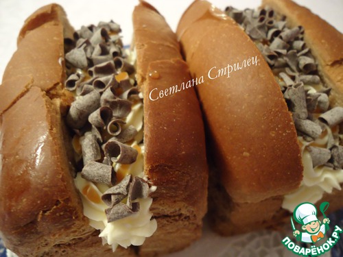 Сверху крем посыпаем шоколадной стружкой. Получается о-о-очень вкусная выпечка! Приятного аппетита!