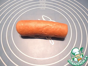 Вырезаем длинную полосу пергамента, смазываем ее с двух сторон маслом. Укладываем рулетики в форму, перекладывая пергаментом.