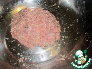 Фарш нужно тщательно перемешивать для того, чтобы из кусочков мяса выделился белок и фарш стал вязким и плотным. В таком виде он крепко сидит на шампурах и не разваливается, поэтому месим его как тесто, минут 5-7. Отправляем готовый фарш на 30 мин в холодильник.