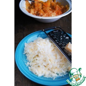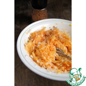 Смешать тыкву и сыр, поперчить. Можно приправить тёртым мускатным орехом. Солить не нужно.