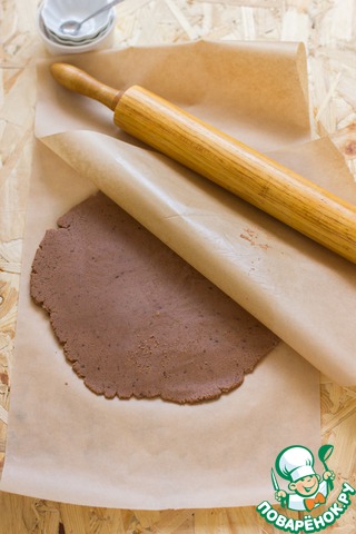 Раскатать тесто между двумя слоями пергамента до толщины 7-8 мм. При необходимости пласт теста убрать в холод на полчаса. Духовку разогреть до 180 градусов.