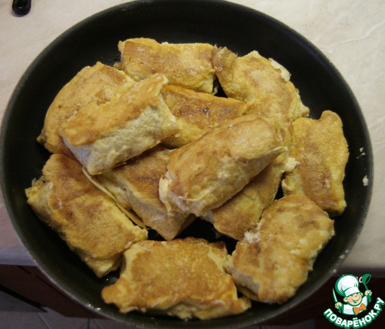 Делам кляр, я сделала кляр, как в рецепте xsenia http://www.povarenok .ru/recipes/show/626 15/ только без добавления масла. Последовательность такая: