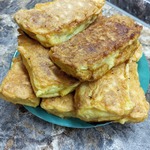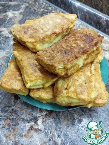 В оригинальном рецепте омлета по-Кузбасски нужно было приготовить жидкий кляр из 2 яиц муки и воды, посолить. Тут каждый волен выбрать, каким способом будет делать кляр, так как на вкус, на мой взгляд, это не повлияло. -