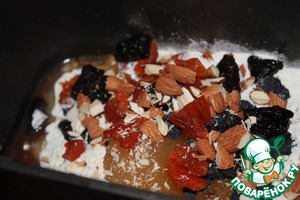 Заложила все оставшиеся ингредиенты и поставила на режим дрожжевое тесто.