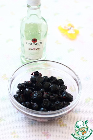 Для этого рецепта нужна кислая ягода. В идеале - вишня, свежая или замороженная. Но черная или красная смородина тоже будет неплохо здесь "смотреться". Нарежьте вишню на небольшие кусочки и залейте алкоголем. Если ягода замороженная, как у меня, то вскоре она пустит сок, и ложки рома поэтому будет вполне достаточно.