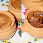 З. Ы. Объем моих горшочков - 90 мл, к тому же у них толстые стенки и они достаточно глубокие. Время выпечки указано именно для такого объема. Если у вас рамекины меньше или больше, уменьшайте или увеличивайте время выпечки, главное - не пересушите десерт. Это тот случай, когда лучше недопечь, чем перепечь.