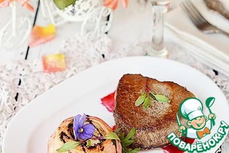 Телячьи медальоны посолить, поперчить и обжарить на сливочном масле (25 г) с двух сторон. Три минуты с одной стороны и полторы-две с другой. Это если ваши отбивные толщиной примерно 4-5 мм. Мясо нельзя передерживать на огне, чтобы оно не превратилось в то, что принято называть "подошвой". Переложить готовые медальоны в теплое место, упаковав в фольгу.