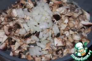 Шампиньоны режеи м обжариваем на сливочном масле с репчатым луком