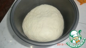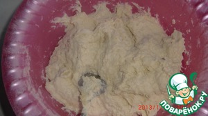 Замесить тесто. Тесто не должно липнуть к рукам. Прикрыть тесто полотенцем и поставить в теплое место на час.