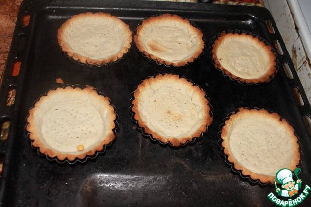 Выпекаем при 170 градусах 10 минут, затем убираем груз и выпекаем дальше минут 7. Вынимаем формочки только посте полного остывания