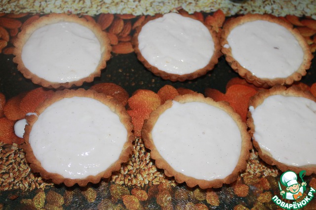 В тарталетку кладем начинающий остывать крем-пудинг -