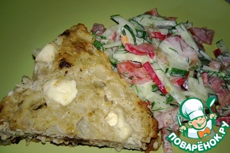 Из отступлений от рецепта: майонез не едим, поэтому заменили сметаной 20%. Готовый пирог получается сливочный, многие думают, что внутри сыр