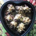 Мне удобнее формировать сразу несколько торб на доске. Сначала выкладываю несколько кусочков мяса, потом на них начинку, и затем все подряд защипываю зубочисткой