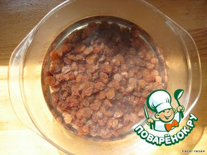 В массу добавить разрыхлитель (или соду) и постепенно всыпать муку. Замесить тесто. Изюм высушить и, присыпав мукой, добавить в тесто.
