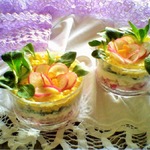 P. S. Чтобы цветочки не распадались, их можно скрепить небольшими кусочками от зубочисток. Только обязательно предупредить гостей об их наличии, чтобы зубы не повредили.