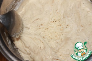 Закваска у меня была готова по вот этому рецепту. http://www.povarenok .ru/recipes/show/715 94/ Утром подкормила закваску. Взяла 2 ложки готового стартера, добавила 150г муки и 75г воды
