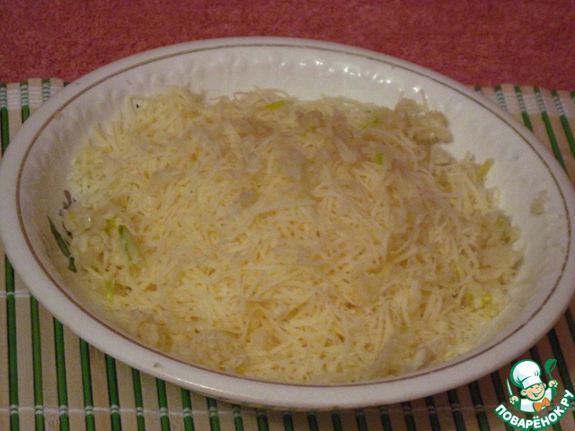 • Сыр натереть на мелкой терке, чеснок измельчить, добавить вторую половину майонеза и тщательно перемешать