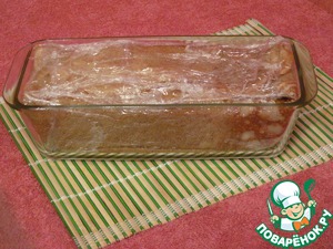 Взять прямоугольную форму 24х11, высота 7 см, застелить пищевой пленкой.