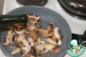 Добавляем соль, перец, 2 ст. ложки белого вина и тушим еще минут 5