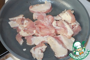 Куриное филе обжариваем на сильном огне в оливковом масле