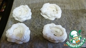 Переложить безе в мешок кондитерского шприца. Протвень застелить бумагой для запекания. Сделать корзиночки с бортикам особое внимание уделяя дну, чтоб оно было хорошо заполнено. Отпрпавить в духовку разогретую до 100 градусов и сушить козиночки в течении одного часа. -