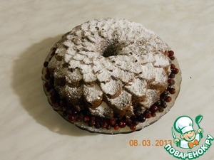 Посыпать сахарной пудрой, украсить ягодами.