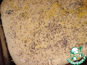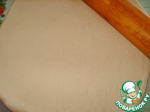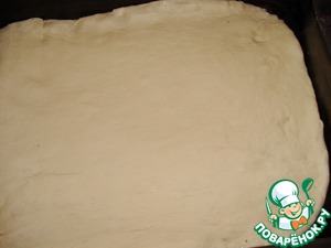 Готовое тесто раскатать скалкой в пласт, размером с противень (40 х 45 см).