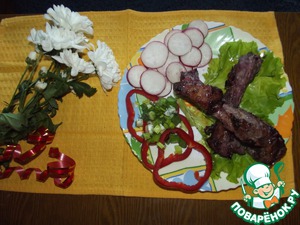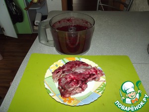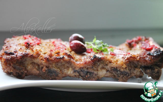Клюкву протереть, добавить соль, сахар, перец. Получившейся смесью намазать ребра и оставить мариновать минут на 30-40 ( чем дольше ребра будут в маринаде, тем вкуснее).