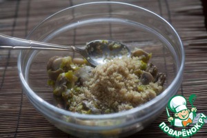 После того, как грибы с луком остынут добавляем отваренную крупу и перемешиваем.