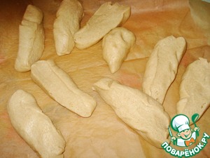 Готовое подошедшее тесто разделить на кусочки (примерно на 21).