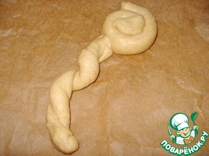 Из одной части скатайте жгутик и сверните в спираль.