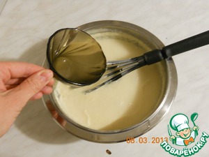 К 1 ст. теплой кипяченой воды добавить соды, налить в тесто, перемешать.