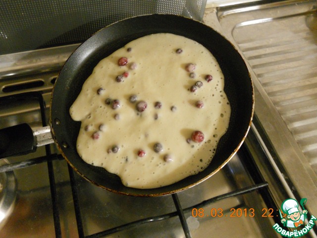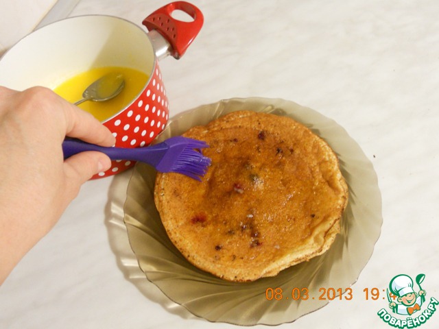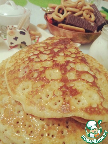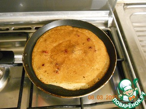 Выпекать на раскаленной сухой сковороде. Наливать по 1 половнику, затем распределить по всей сковороде.